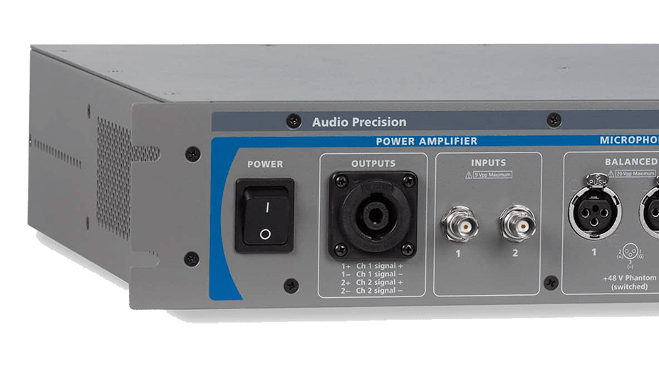 The APx1701 is designed for electro-acoustic testing and drives loudspeakers and headphones with dedicated power amplifiers, enables impedance measurements, and provides power to measurement microphones and microphones under test.
