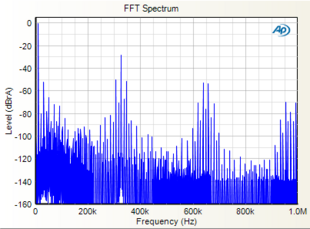 Noise that remains above the audible range can also degrade the sound by causing problems such as oscillation, overheating and damage to components, loss of headroom, and interference with connected or adjacent equipment. A 1 MHz FFT is required to see the harmonics of this out-of-band noise.