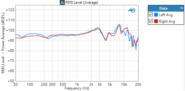 Figure 4. Spatial average of 5 measurements for the Left and Right earphones; Power Average results derived from the data in Figure 2.