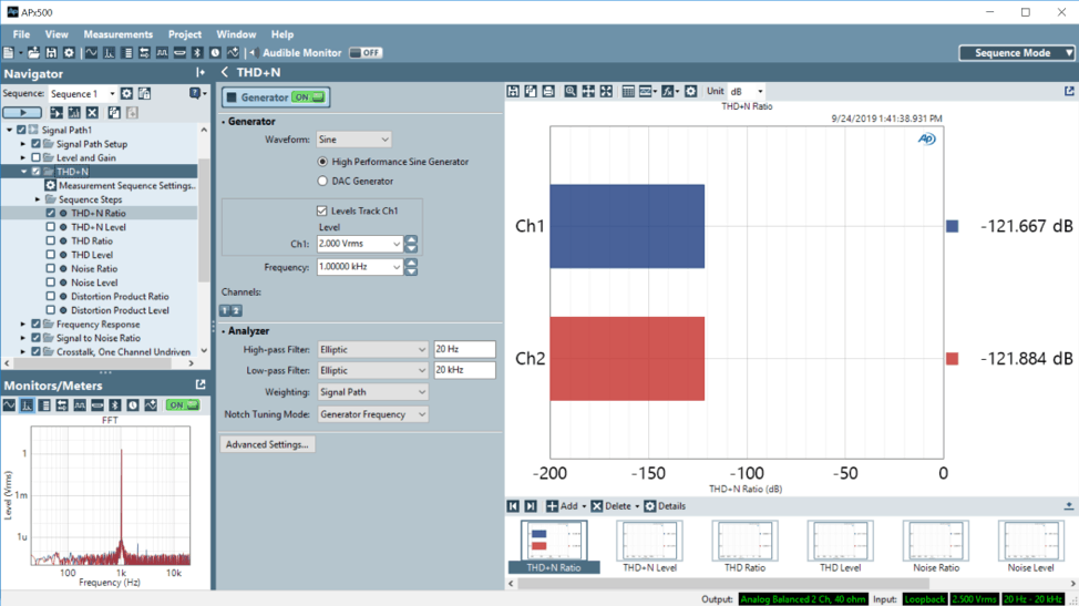 These two modes of operating the APx500 software represent not just two different approaches to how the software is used, but also two different signal processing approaches. Sequence Mode was the original user interface paradigm for the system. We developed it with the goal of making the software easy to use and easy to automate by providing a built-in measurement sequencer and report generator.