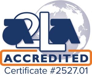 Audio Precision is accredited by the American Association for Laboratory Accreditation (A2LA) under ISO/IEC 17025:2017 for equipment calibration at our main factory in the USA.