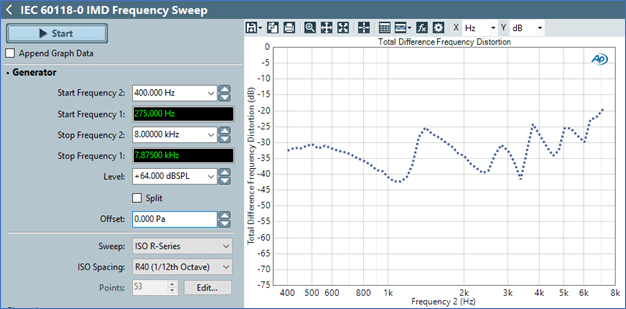 Figure 4. The new ANSI S3.22 IMD Frequency Sweep for hearing aid test in APx.