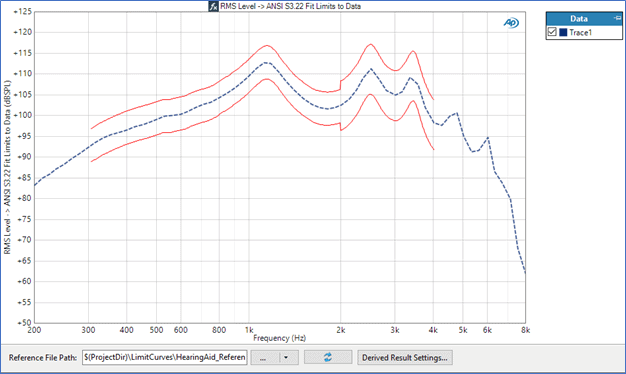 One of the new hearing aid-specific features is the “tolerance method for frequency response” used to construct limits for measured frequency response curves. ANSI/ASA S3.22 and IEC 60118-7 specify that frequency response limits are constructed based on a reference curve for the model of hearing aid being tested. Limits are offset from this curve by ±4 dB in a low-frequency range (up to 2 kHz) and by ±6 dB in a high-frequency range (above 2 kHz). Interestingly, the standards suggest the use of a transparent overlay with the limits drawn at the same scale as the measured frequency response of a unit. The limits may be shifted not only in the vertical direction (along the level axis), but also horizontally, by up to ±10% along the frequency axis, until the measured curve is centered within the limits.