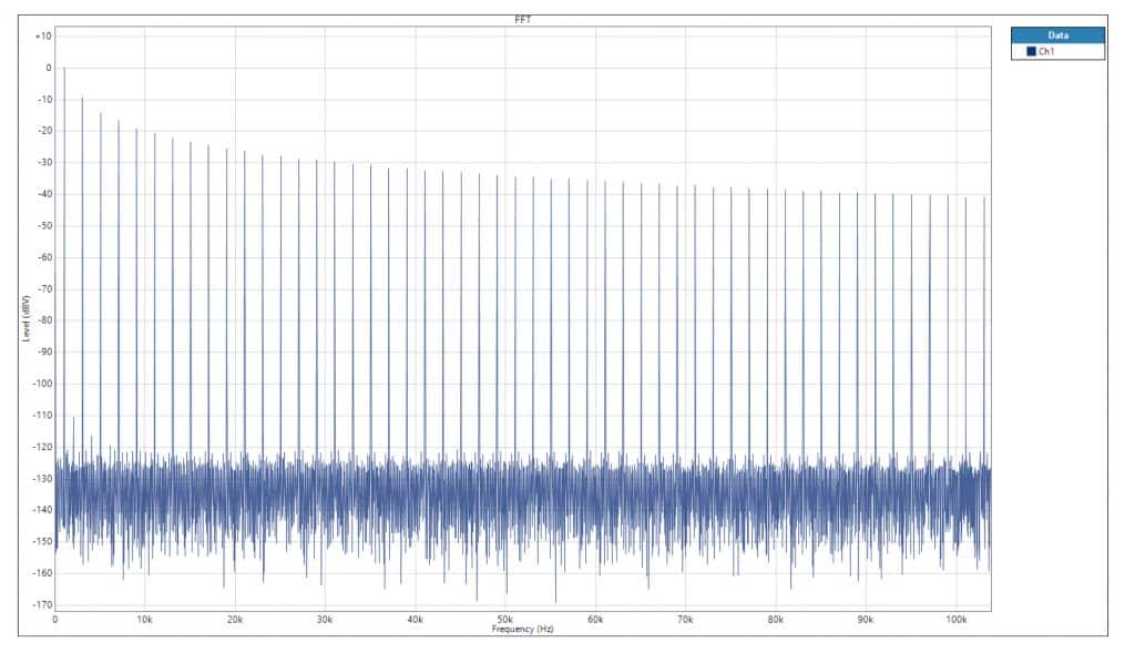 Square wave created by an APx525 audio analyzer with the AG52 option, frequency domain.