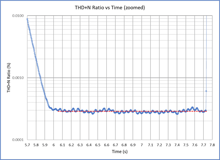 Figure 2. Zoomed in portion of the THD+N vs time plot highlighted in Figure 1.