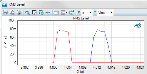 The APx Waveform Computes Utility extends the capabilities of APx500 by making Fast RMS (root mean square) measurements. In addition to RMS level measurements, it utilizes Fast RMS for a number of useful tasks: audio/video synchronization, dropout detection, and pop/click detection.