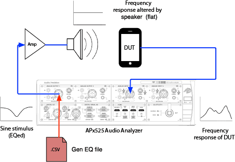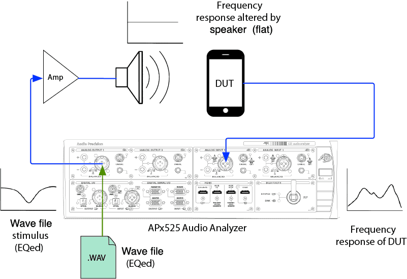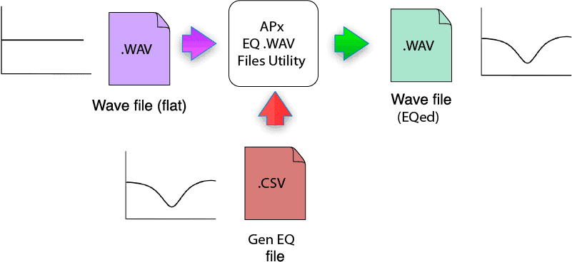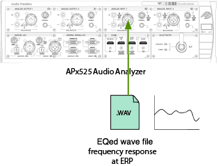 When the generator stimulus source is a .wav file instead of a sine wave, the APx EQ .wav Files Utility is used to apply the inverse EQ curve to the .wav file.