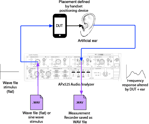To measure the frequency response of a device, the DUT is substituted for the measurement microphone.