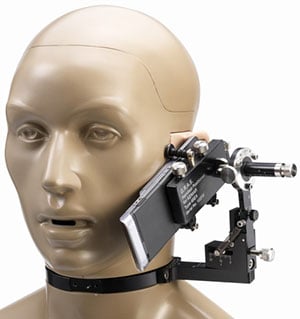 Fig 1 G.R.A.S. KEMAR manikin Type 45BM with 45EA handset positioning system.