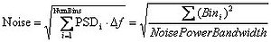 The RMS noise level in any given spectral bandwidth can be determined by integrating the power spectral density over that bandwidth. For the entire bandwidth from DC to one half the sample rate (fS/2), the noise level is calculated by summing all FFT bins, as shown in equation 3.