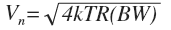 where” Vn” is the rms noise voltage measured over the bandwidth “BW”, “k” is Boltzmann’s constant, “T” is absolute temperature, and “R” is the value of the resistor. There are several important insights revealed by this formula.