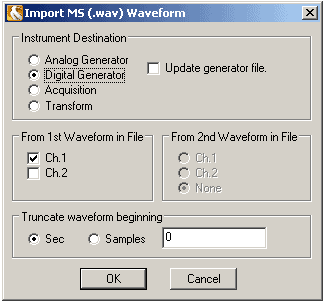 Figure 1 Importing an arbitrary waveform into the digital generator.