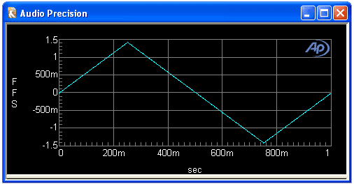The related Low Frequency Triangle Wave download contains the two waveforms discussed above. Bothare 24-bit with 16,384 samples and contain one cycle of a triangle wave.One has a frequency of 1.0 Hz and is sampled at 16.384 kHz. The other has afrequency of 2.926875 Hz and is sampled at 48 kHz.