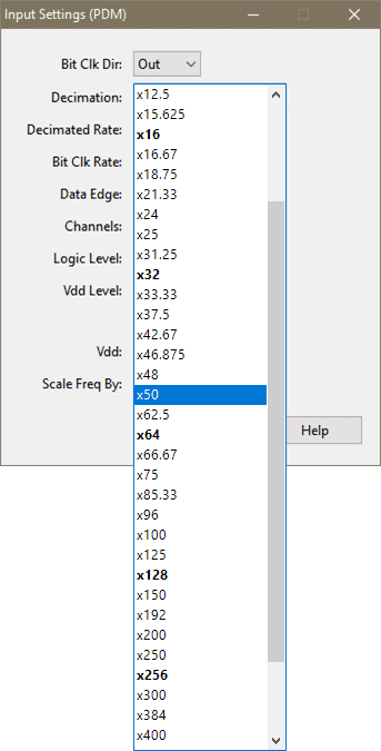 Hence a simple 8x divider can provide an oversampling frequency of 2.4 MHz, which neatly divides by 48 kHz with a factor of 50. In response to this need, the APx PDM option supports 50x oversampling and 44 additional ratios that support many other clock rates in APx500 v4.5 measurement software.
