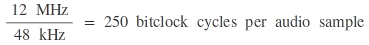 Designers of many USB audio products have realized a far simpler and less expensive method that allows for direct use of the existing 12 MHz bit clock. The relationship between a 12 MHz bitclock and a 48 kHz sample rate is easily expressed as: