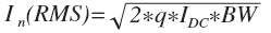 In the above example where Idc = 1 mA and BW = 20 kHz, the associated shot noise is 2.53 nA (rms). This may seem like a negligibly small value (about -111.9 dB in comparison to the 1 mA dc component), but the designer must be careful to analyze how this affects a given circuit in relation to the intended signal levels.