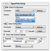 - From the Device pull down menu select SSL Soundscape ASIO.