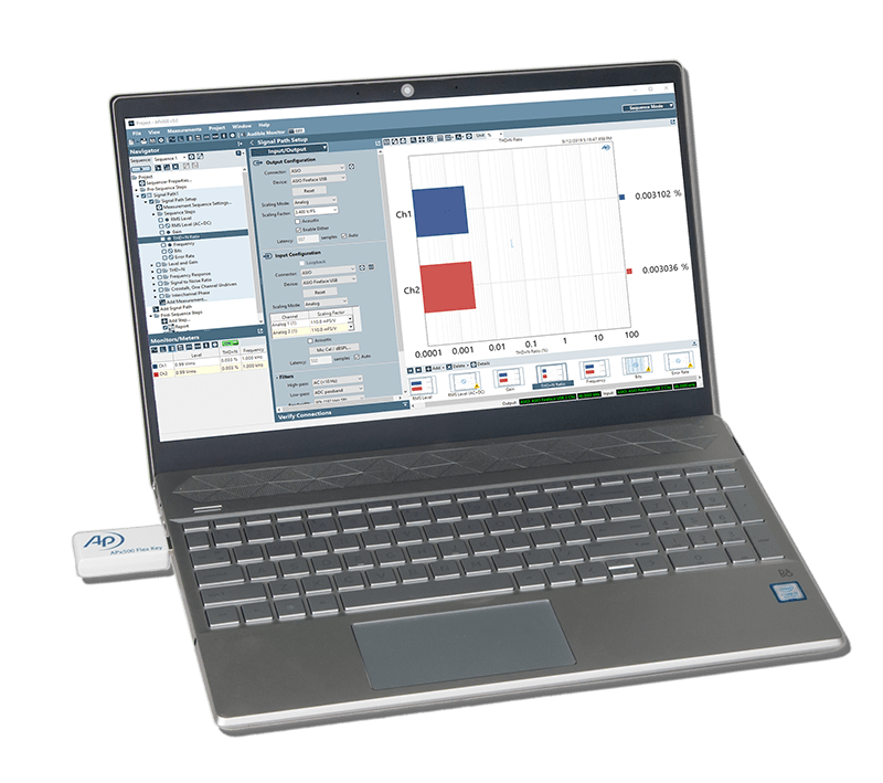 To test audio devices across both Bluetooth Classic and Bluetooth 5 standards, measurement equipment must ideally have reliable connectivity to these interfaces and the ability to provide stimulus across the range of profiles and codecs that Bluetooth audio devices use. Audio Precision's Bluetooth 5 module provides an interface to audio devices using the latest version of the Bluetooth specification, including LE Audio devices utilizing Unicast and Auracast, useful for designers and manufacturers of earbuds, headphones, headsets, hearing aids, speakers, automotive infotainment systems, etc. Our Bluetooth Duo delivers a wider selection of A2DP codecs, faster pair and connection times, an increased feature set within APx500 measurement software, and improved RF shielding for use in production test environments.